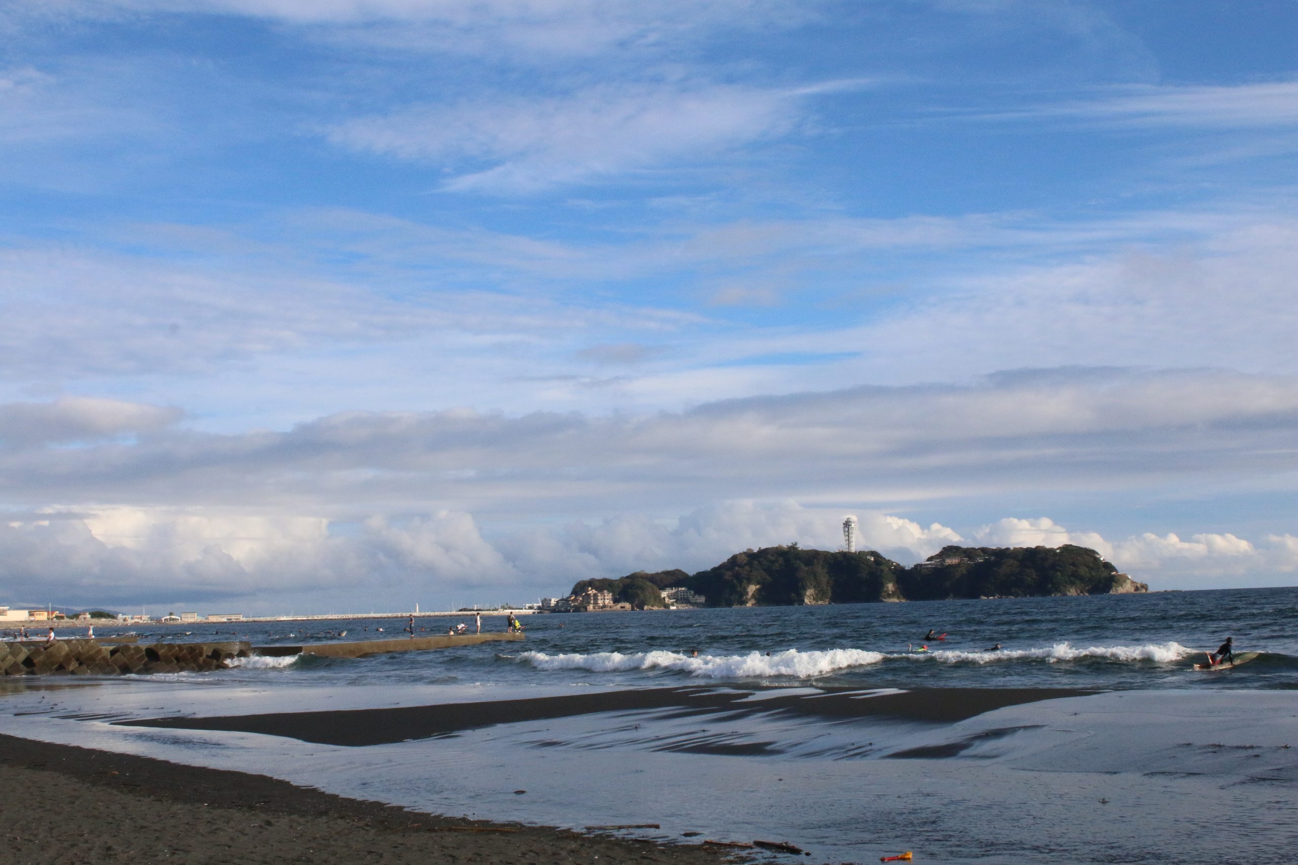 夏の終わりの江の島ではまだたくさんのサーファーがサーフィンを楽しんでいました。