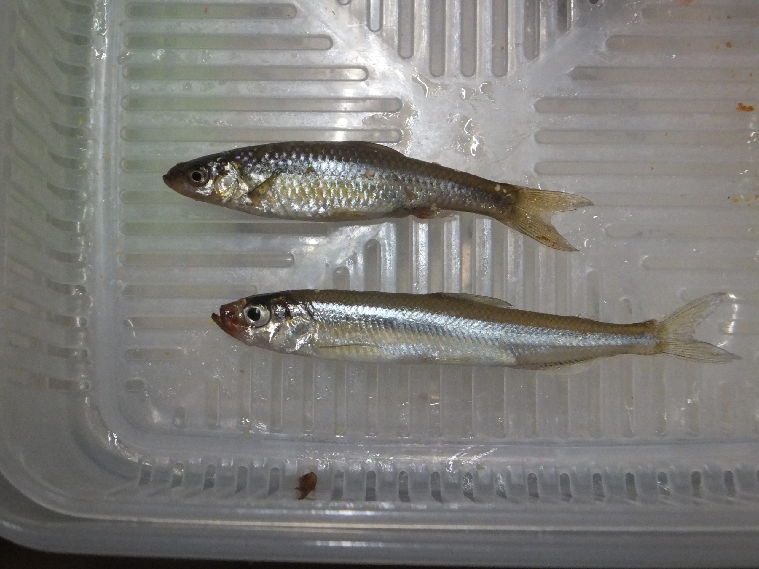 氷上釣りの釣果は5人で2匹。ワカサギとクチボソでした。