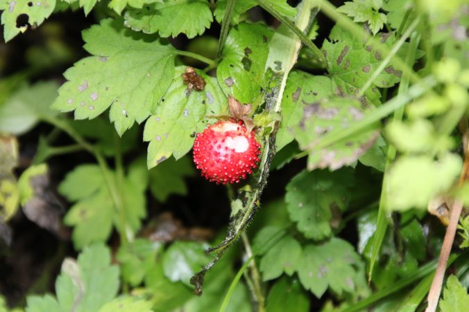 何者かにかじられたヘビイチゴ(2021年6月)