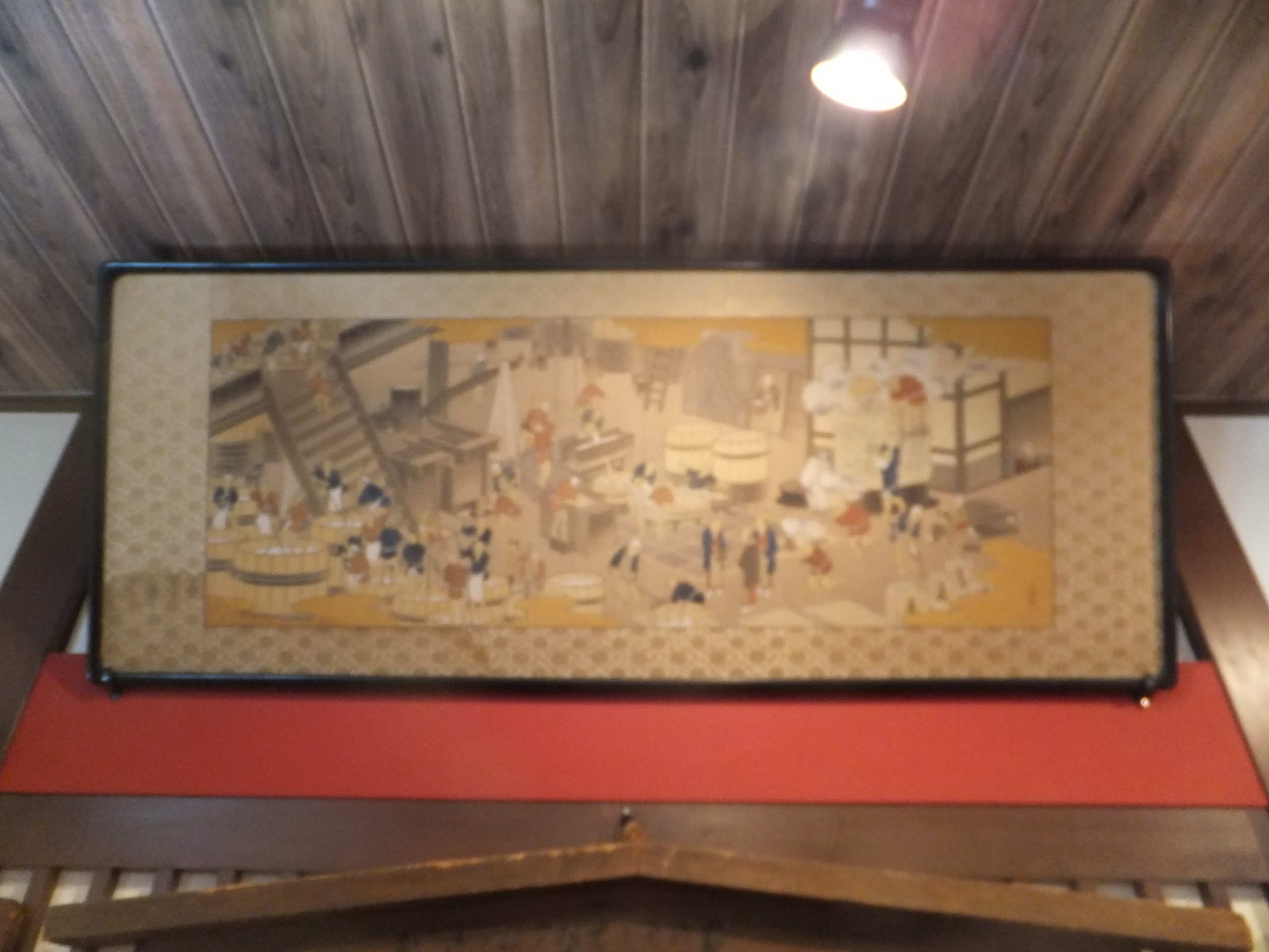 江戸時代と思われる時代の酒造の風景画がありました。値段の交渉をしている人と書いて意外と面白い。