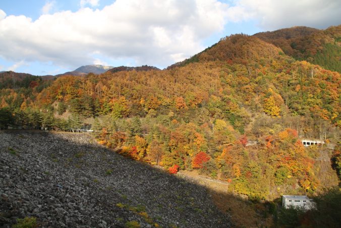 広瀬ダム右岸から国道140号を望む(2021年11月)