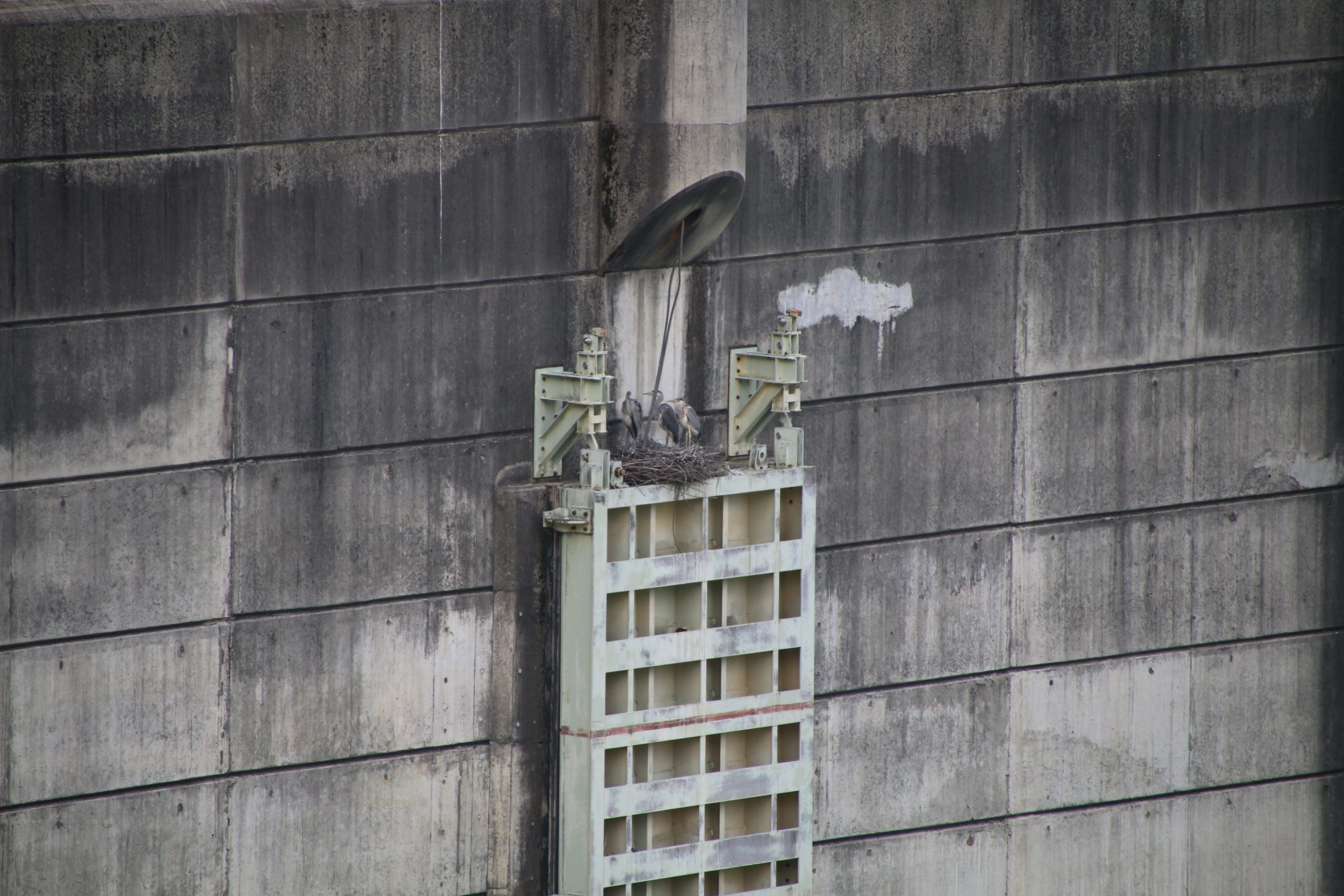 古谷ダムゲートのアオサギの巣(2022年7月)