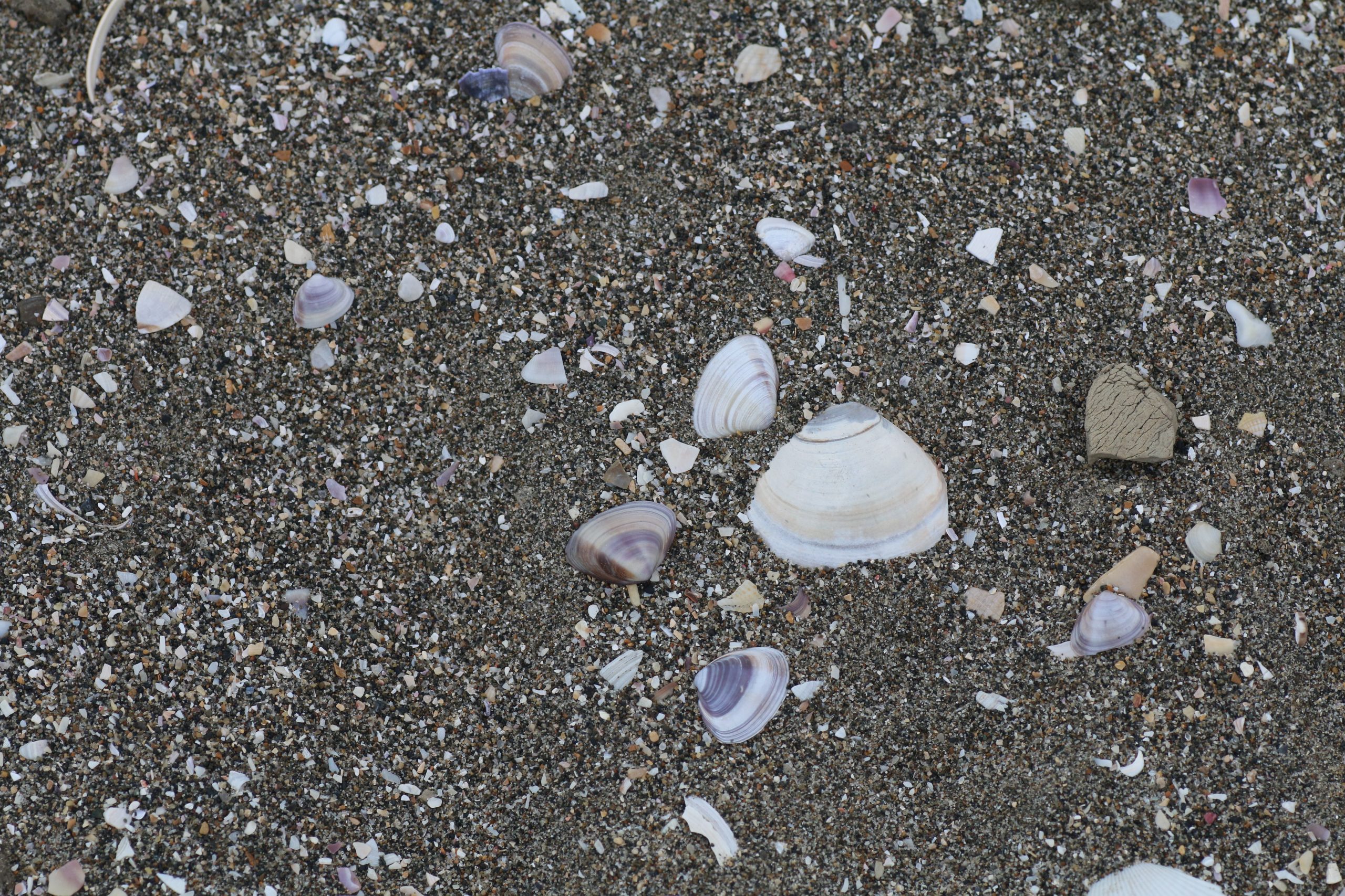 美しい貝殻@冬の白里海岸 白里海岸で足元を見ると美しい貝殻がたくさん落ちていました。砂と貝殻(の破片)の混じった砂浜でした。