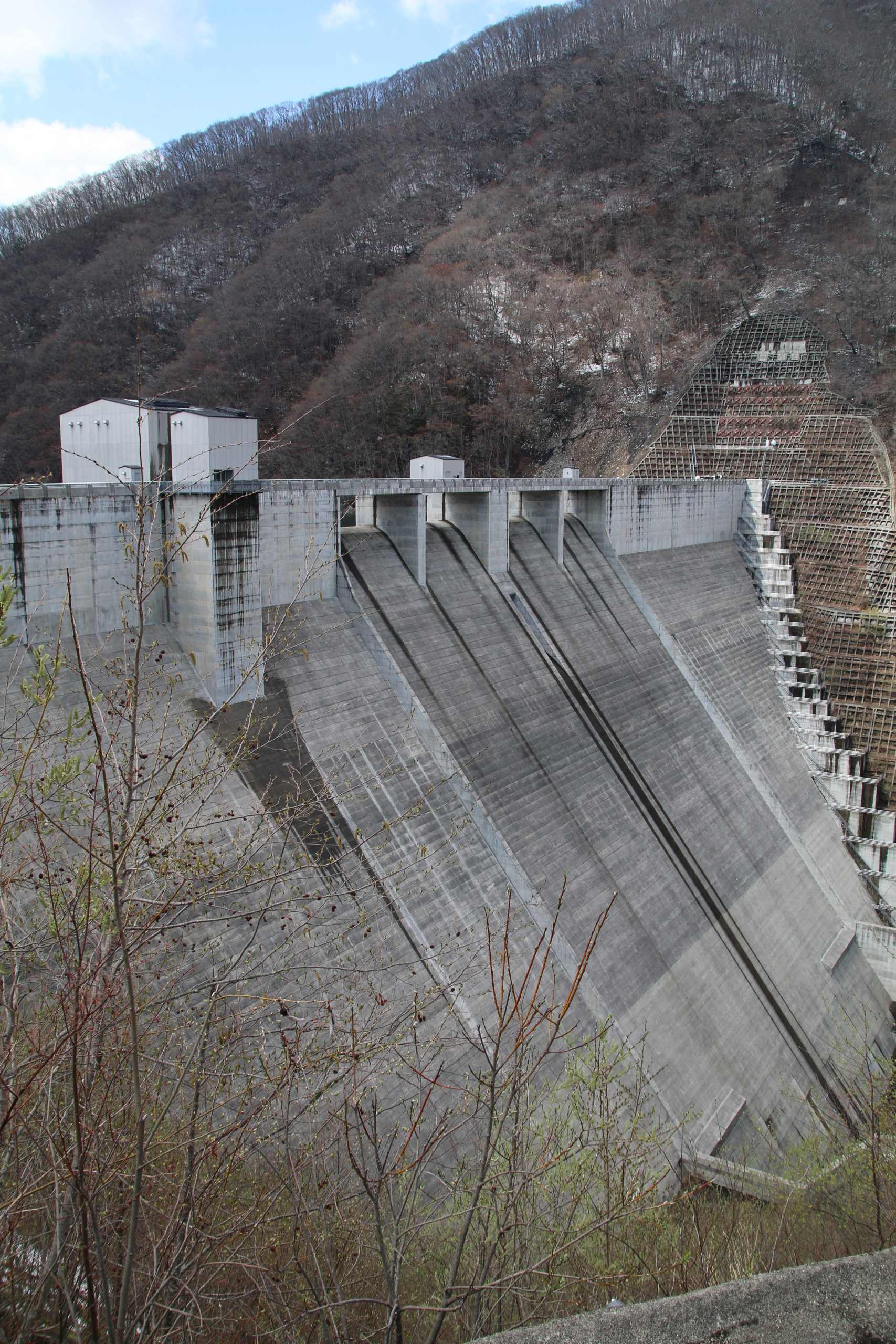 湯西川ダム堤体を右岸から望む(2023年4月)