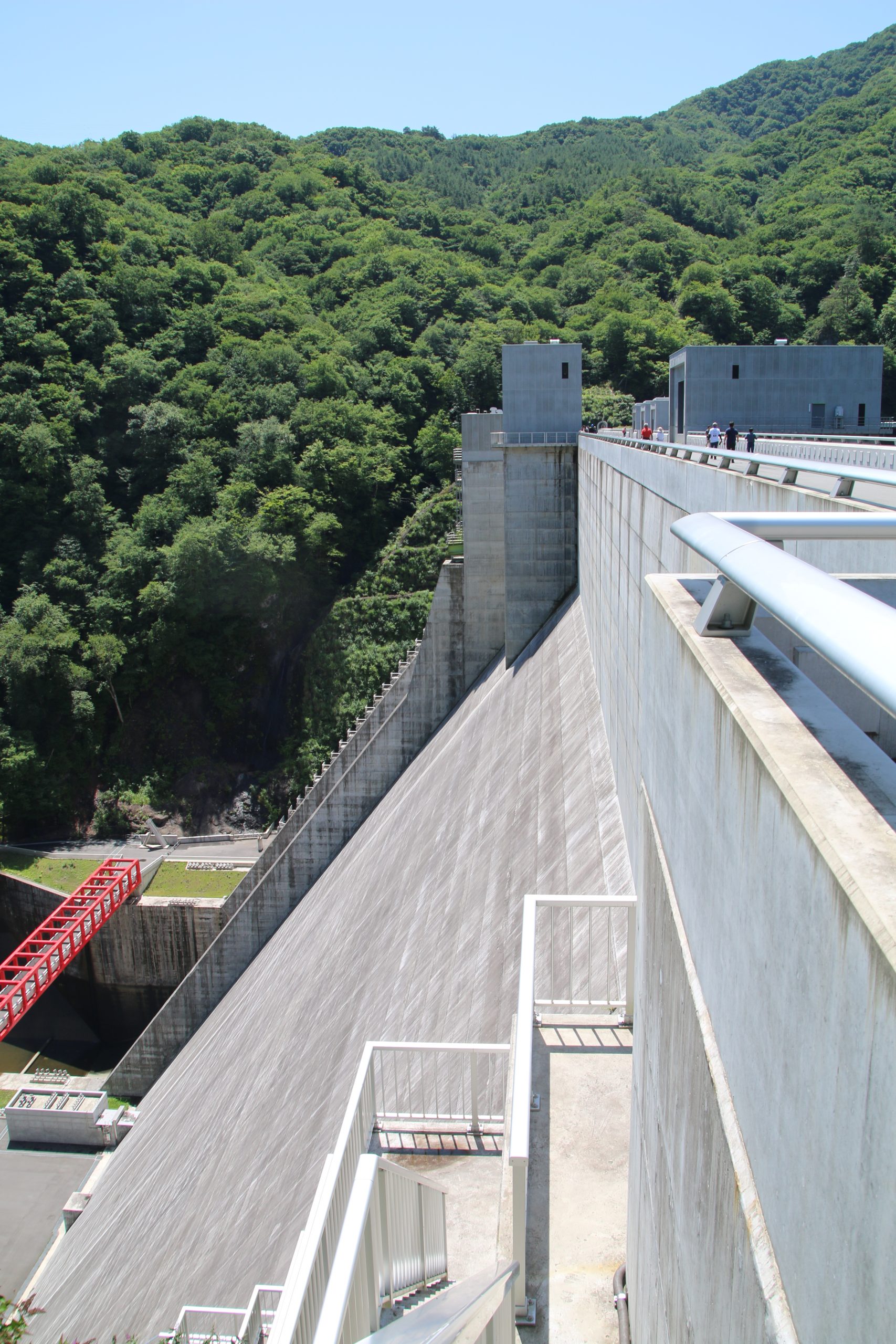八ッ場ダム堤体を左岸天端から望む(2023年7月)