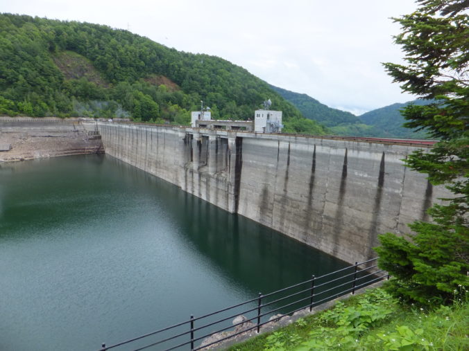 糠平ダムのゲート付近を右岸上流から望む(2014年8月)