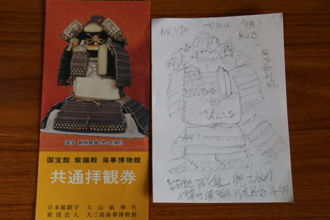 紺絲威鎧・兜・大袖付の写真とスケッチ(2025年5月)