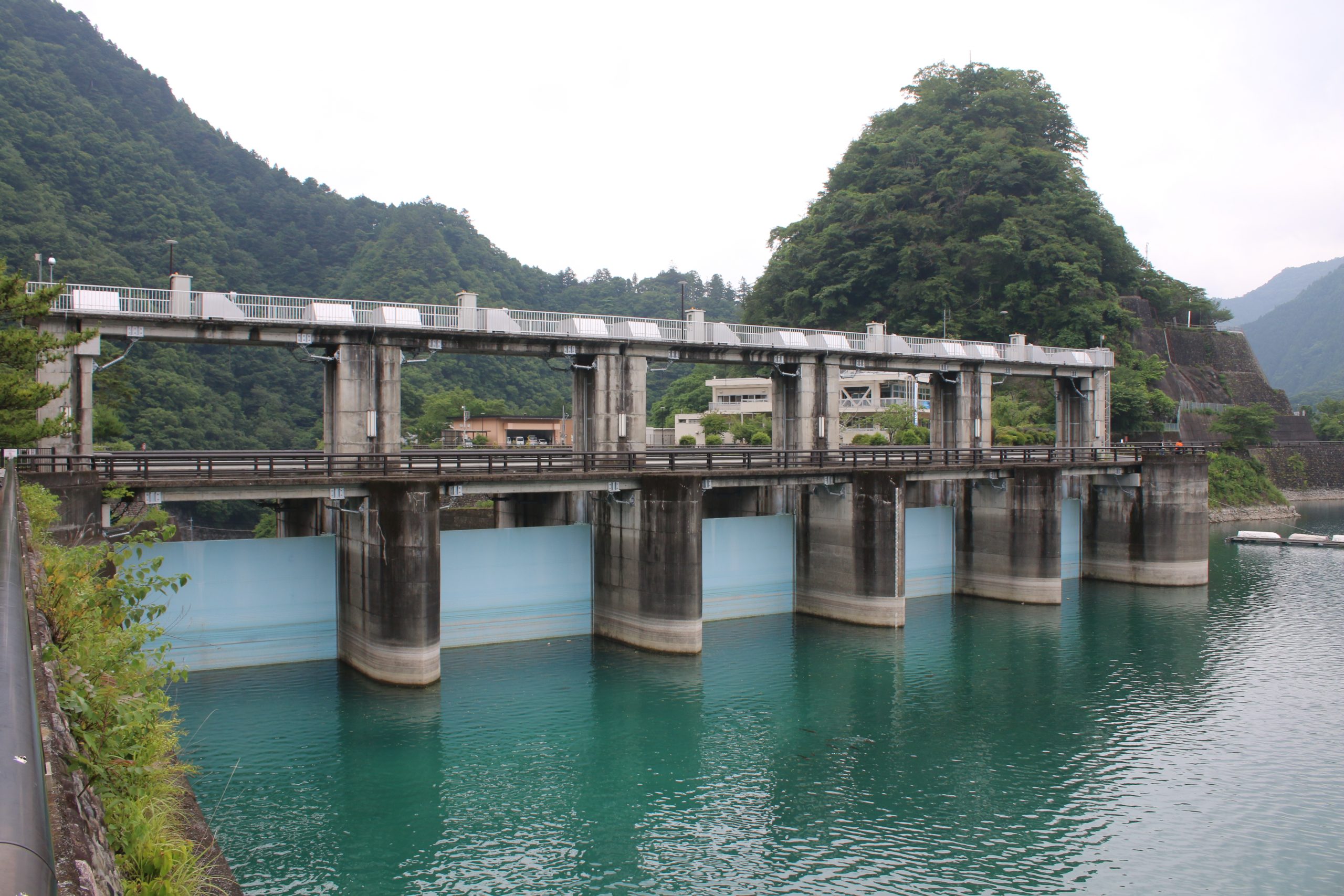 小河内ダムの洪水吐は堤体から離れて別のダムのようです